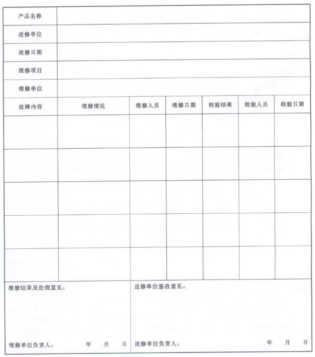 4、产品维修后,应依据相关产品标准进行检验,记录检验结果,合格后应加贴检验合格标识。